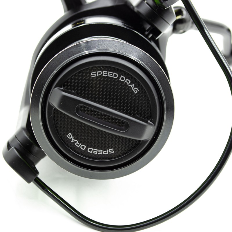 Нередко ловля карпа требует забросов на максимально возможную дистанцию. А иногда и дальше! Именно в таких случаях вы оцените все преимущества этой катушки. Удлиненная низкопрофильная шпуля большого диаметра имеет большую площадь поверхности. Благодаря этому при сверхдальних забросах диаметр намотки уменьшается крайне незначительно, а это значит, что леска не испытывает повышенного трения о выступающий буртик шпули, как это происходит при использовании обычных катушек. Идеально ровную укладку лески обеспечивает бесконечный винт. Под шпулей находится специальное кольцо на четырех опорах, цилиндрические выступы которого входят в пазы, расположенные на внутренней поверхности ротора. Благодаря этому леска не может попасть под шпулю и намотаться на ось. «Быстрый» фрикцион с мощными дисками, который позволяет мгновенно менять тормозное усилие, отличается стабильностью работы и не подведет в самый ответственный момент.