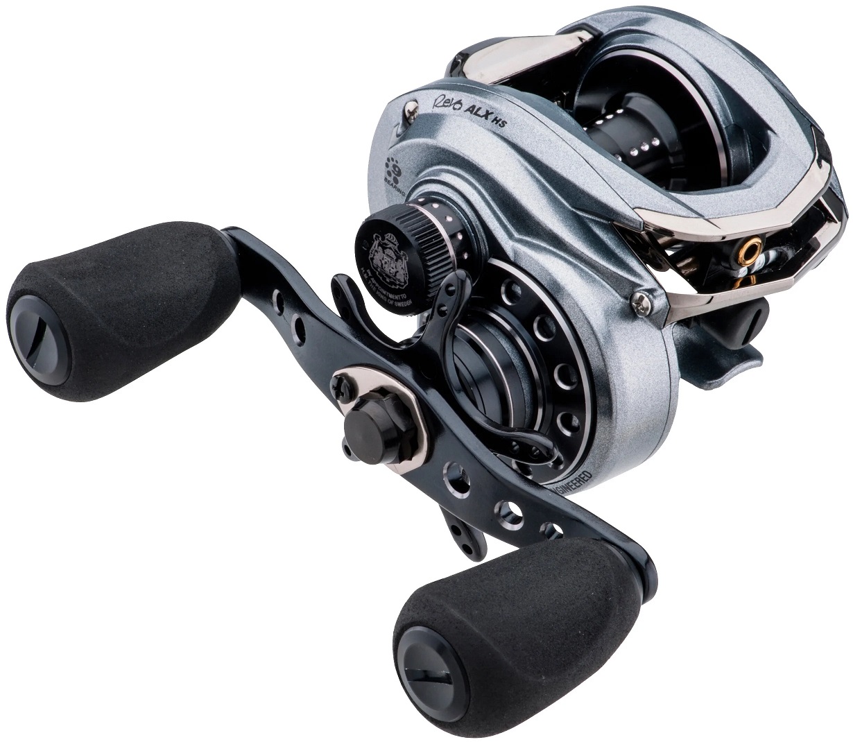 Серия мультипликаторных катушек Revo ALX от шведского бренда Abu Garcia включает в себя 4 низкопрофильные модели. Все мультипликаторы имеют надежные, прочные корпуса, выполненные из современного алюминиевого сплава X-Craftic. Боковые крышки изготовлены из графита C6. Это позволило снизить вес катушек и защитить механизм от воздействия коррозии. Надежный механизм оснащен бронзовой шестерней DuraGear, а также 9 подшипниками - 8 шариковыми HPCR из нержавеющей стали и 1 роликовым с защитой от коррозии. Система лесоукладывателя с "бесконечным винтом" отключаемая и во время заброса остается статичной. Фрикционный тормоз Carbon Matrix имеет регулировку в виде звездочки и оснащен "трещоткой". В серии Revo ALX установлен магнитный тормоз Mag Trax, позволяющий настроить катушку под конкретные условия ловли. Рукоять с изогнутым профилем имеет два плоских кноба.