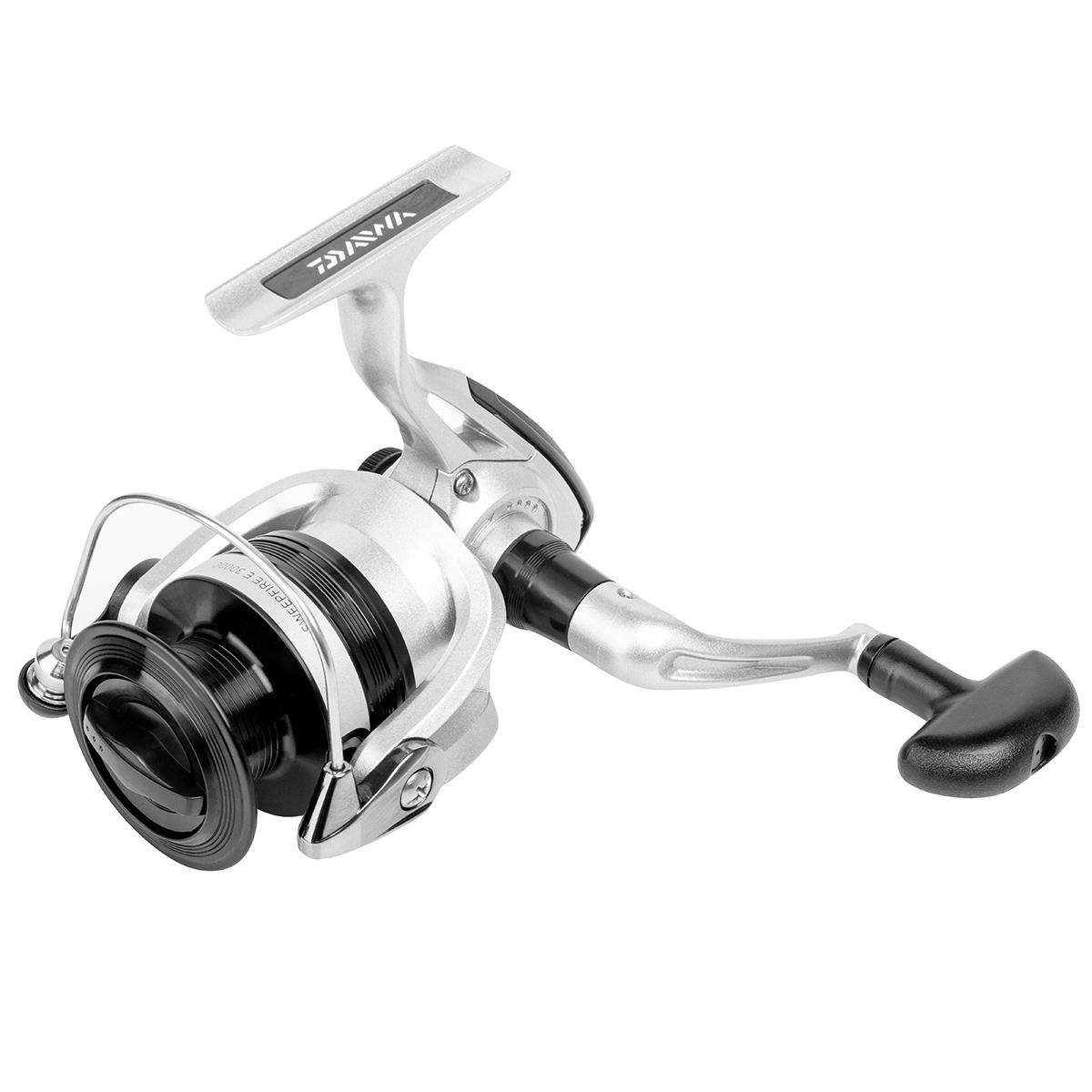 Одной из самых недорогих серий среди безынерционных катушек японской компании Daiwa является линейка под названием Sweepfire EC . В нее входят восемь экземпляров, среди которых имеются модели с передаточным числом 4.6:1 или 5.3:1 и весом от 230 до 630гр. Среди такого широкого выбора всегда можно подобрать катушку, максимально подходящую для использования в ваших условиях. При изготовлении корпуса и ротора использовался прочный, но одновременно достаточно легкий материал. В конструкции установлен один шарикоподшипник, а чтобы ротор не мог случайно провернуться в обратную сторону, имеется стопор обратного хода Multi Stop. Во избежание поломки ручки в то время, когда катушка не используется, ее можно ослабить болтом и приложить к корпусу самой катушки. За один полный оборот рукояти наматывается от 68 до 99см лески. С целью минимизировать образование нежелательных петель и улучшить намотку лески, использована фирменная ABS шпуля с геометрией в виде обратного конуса и специальный ролик лесоукладываетля.