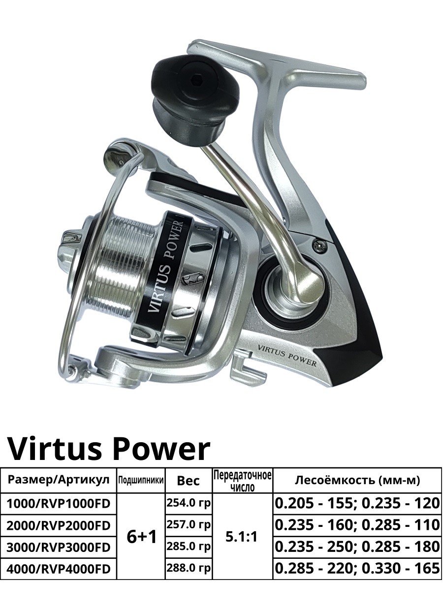 Одна из самых популярных бюджетных безынерционных катушек Ryobi Virtus получила новую модификацию под названием Virtus Power. Новинка незначительно отличается от предшественника, но эти изменения сделали ее более надежной в эксплуатации. Во-первых, на катушку были установлены дополнительно два шариковых подшипника, за счет чего повысилась плавность хода и надежность узлов. Во-вторых, новая Ryobi Virtus Power получила новую рукоять, которая напрямую вкручивается в главную шестерню. Это значительно снизило люфты у катушки и сделало срок её использования более длительным. В-третьих, катушка получила светлый дизайн – корпус и шпуля сменили цвет с черного на серебристый.