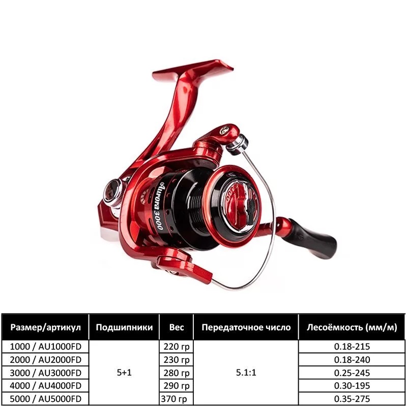 —Катушка /SibBear/ AURORA 3000 5 gear ratio5 1:1 (цвет - красный)