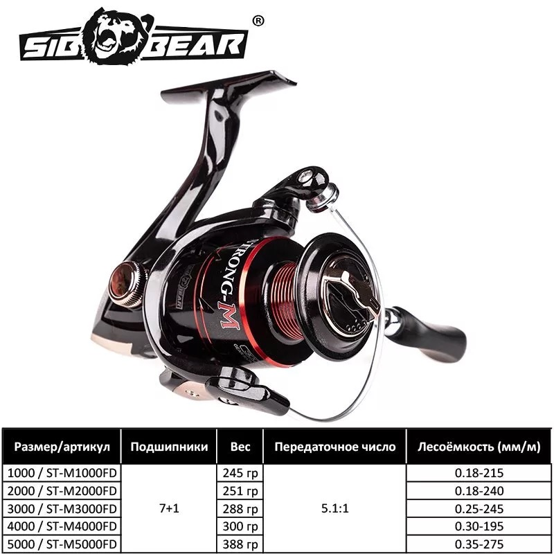 Катушка /SibBear/ STRONG-M 3000 7+1 5,1:1 лесоемк. 035/125
