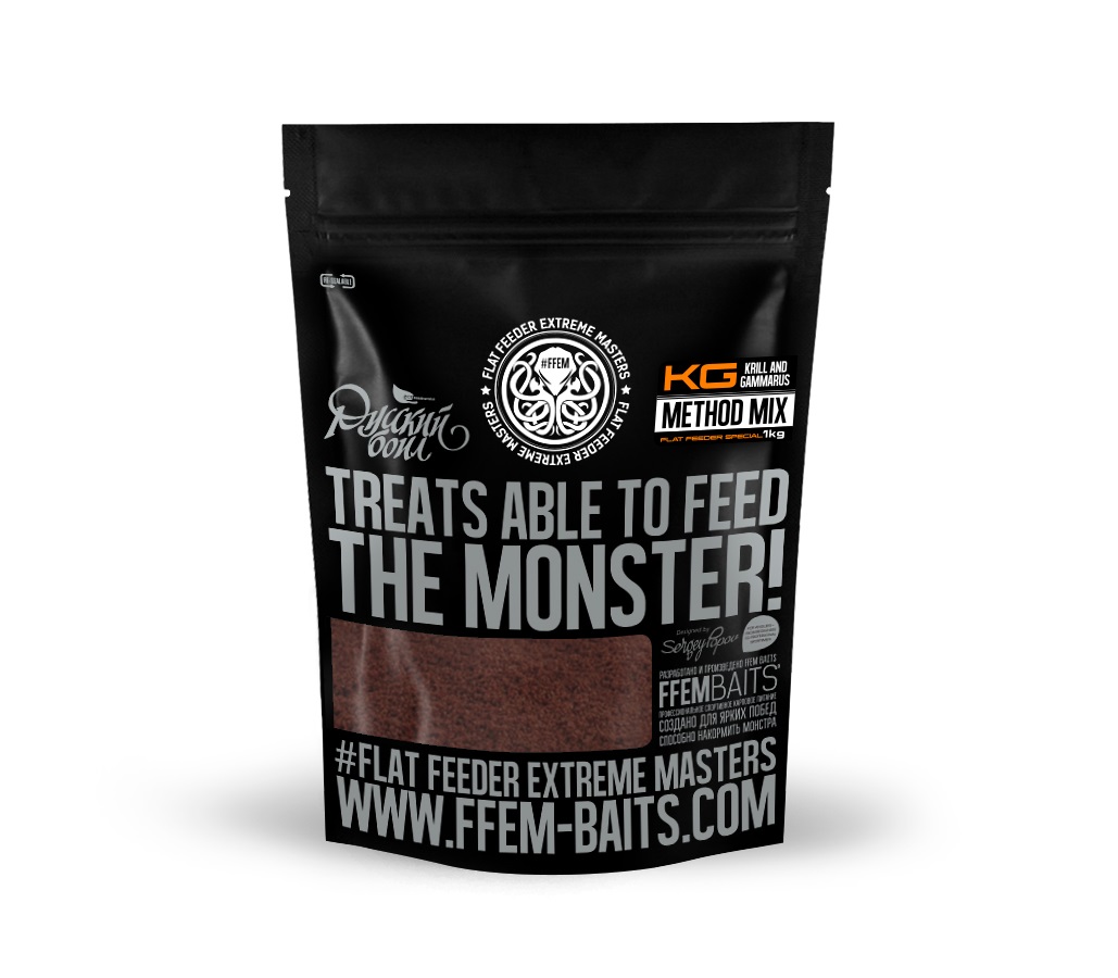 FFEM Method Mix K-G Krill and Gammarus – питательная HNV (High Nutritional Value) прикормка на основе муки криля и гаммаруса. Предназначена для ловли на Feeder и Flat-Method Feeder. Также может использоваться в качестве компонента для приготовления Spod-миксов, PVA мешков и стиков.