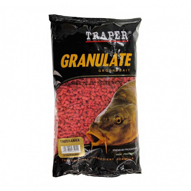 Traper Granulates – гранулированная прикормка изготавливаемая по особой технологии, воплощающая в себе последние достижения в области изготовления прикорма. Фракции имеют разный диаметр, чем больше – тем дольше время распада. После попадания в воду гранулы начинают шаг за шагом распадаться и высвобождать аромат.