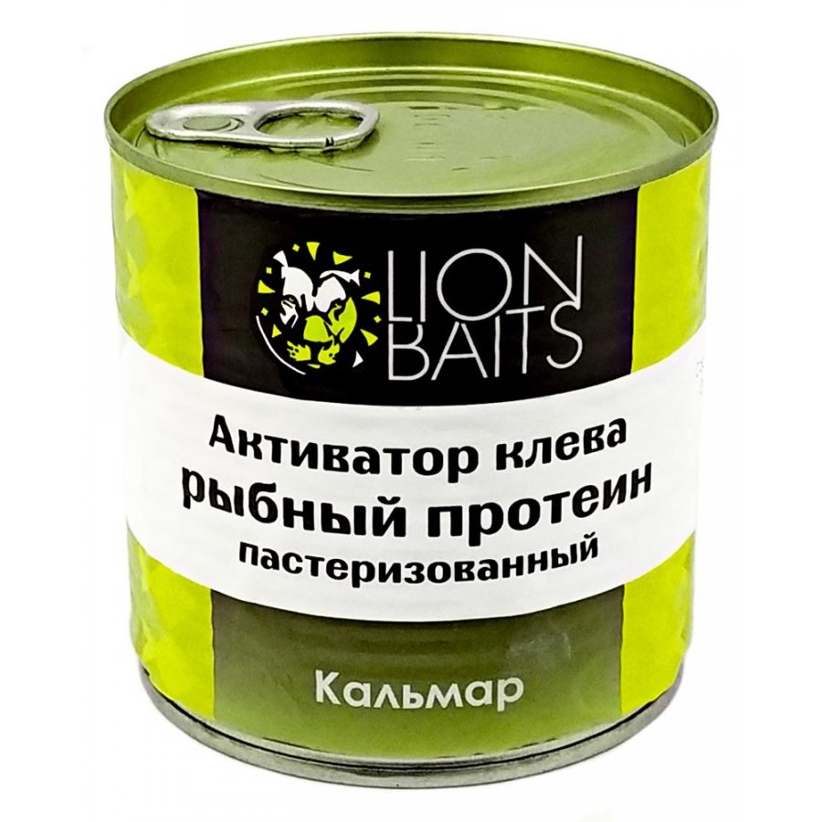 Активатор клева "Рыбный протеин" /LION BAITS/ пастеризованный "КАЛЬМАР" банка 430 мл