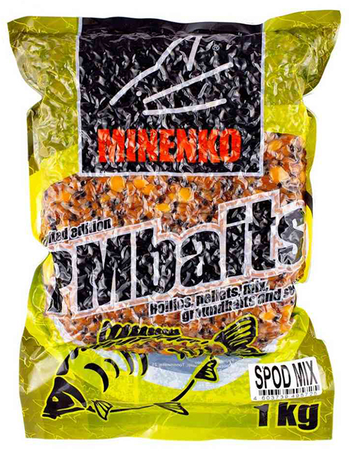—Смесь зерновых /Миненко/ PMbaits Spod Mix 1кг кукуруза, конопля, сахарное сорго, пшеница