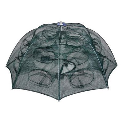 Раколовка зонт на автоматической ручке 16-ть входов. Раколовка автоматическая зонт приобрела новые формы. Теперь раколовка 16-ти входовая является точной копией настоящего зонта с рукояткой зонтика и системой раскрытия, как у настоящего зонта. Два ряда металлических спиц позволяют раскрыть без деформации рачевницу. Спицы размещены с внешней стороны рачевницы, что обеспечивает теперь полное отсутствие повреждений капронового полотна орудия лова раков. Новый подход к раскрытию раколовки - надежный и простой он обеспечивает надежность и долговечность ловушке. Легко собирается, как зонтик, достаточно лишь нажать кнопку на рукоятке и система автомат сложит вам рачевницу за считанные секунды. Диаметр 1 метр, 16-ть заходов и надежная внешняя система раскрытия ловушки для раков сделали новую модель лучшей раколовкой на сезон 2017 года! Рекомендуем купить улучшенную модель с прочный каркасом и улучшенным мезанизмом раскрытия. Внимание: длина раколовки с сложенном состоянии составляет 85 см, ширина 7 см.