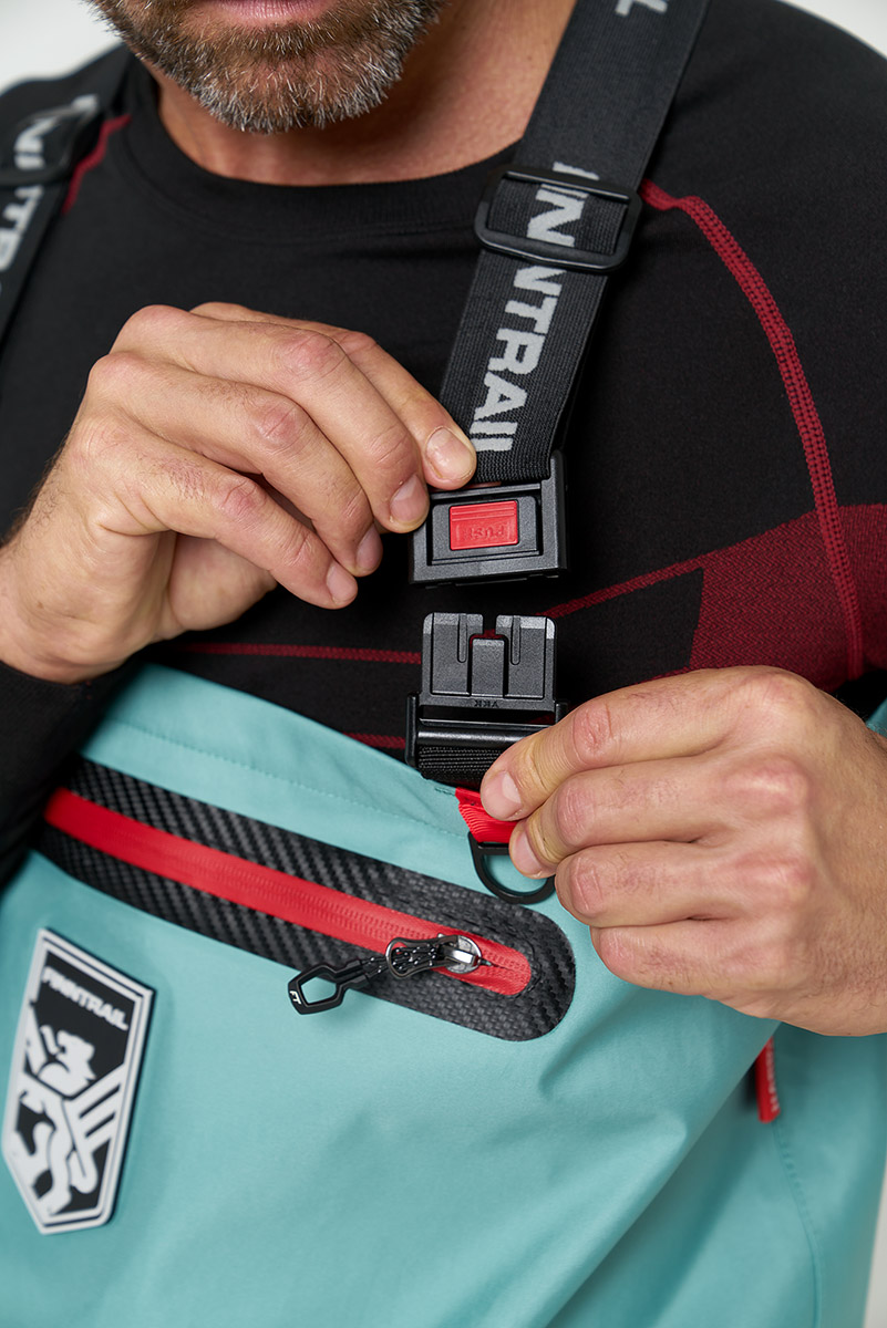 Облегченные вейдерсы для тех, кто предпочитает комфорт. У Wademan минимальное количество швов, особенно во внутренней области ног. Многим знакомо, что вейдерсы по мере износа начинают протекать по швам, меньше швов — выше надежность. Нижняя часть вейдерсов (до пояса) выполнена из прочной четырехслойной ткани с мембраной HARD-TEX, верх из облегченной ткани. Вейдерсы оснащены двумя карманами с защитой от воды, анатомическим кроем, D-образными петлями, петлями для просушки, эластичными подтяжками и ремнем с логотипами FINNTRAIL на замке YKK. В комплекте гермочехол для смартфона и документов, а также удобная сумка для хранения и переноски.